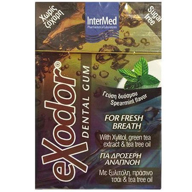 Exodor Dental Gum Οδοντότσιχλα για Δροσερή Αναπνοή με Ξυλιτόλη, Πράσινο Τσάι & Tee Tree Oil 21g