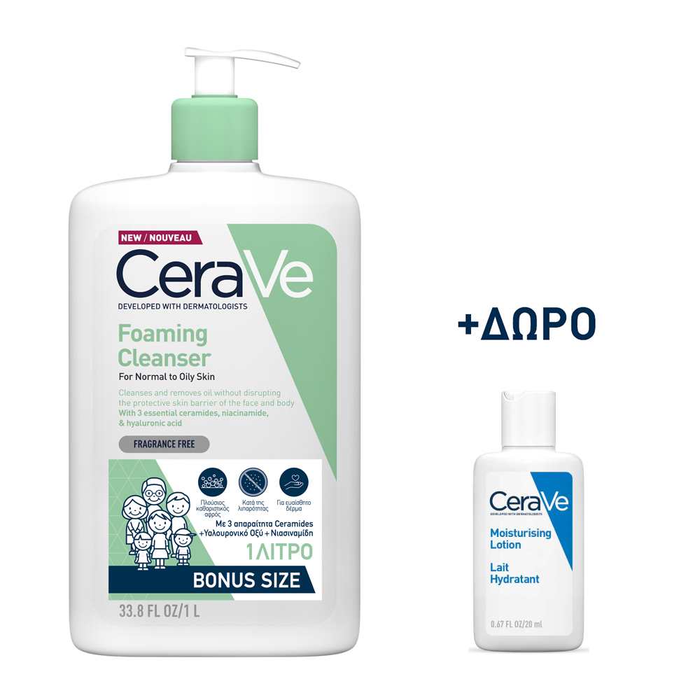 Το CeraVe Foaming Cleanser με δώρο την Moisturizing Lotion 20ml.