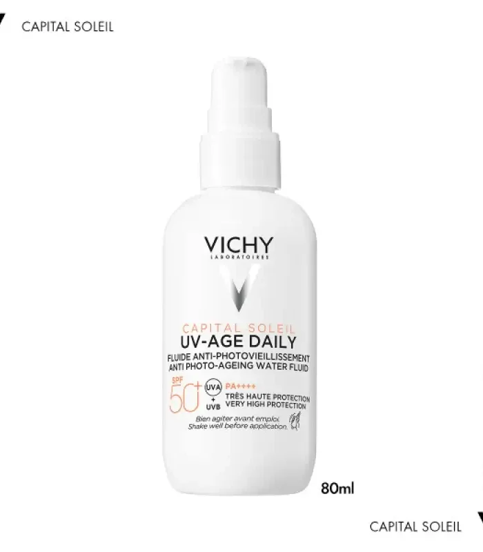 Το UV Age Daily SPF50+ είναι ένα εξαιρετικά λεπτόρρευστο αντηλιακό, πολύ υψηλής προστασίας, που προλαμβάνει και διορθώνει τα σημάδια της φωτογήρανσης . Η τεχνολογία Netlock, κατοχυρωμένη με πολλαπλά διπλώματα ευρεσιτεχνίας, σχηματίζει ένα εξαιρετικά λεπτόρρευστο και ανθεκτικό φιλμ πολύ υψηλής UV προστασίας με αόρατο τελείωμα, για προηγμένη αντηλιακή προστασία ενάντια στις ακτινοβολίες UVB και UVA, οι οποίες ευθύνονται για πάνω από το 80% των σημαδιών γήρανσης.